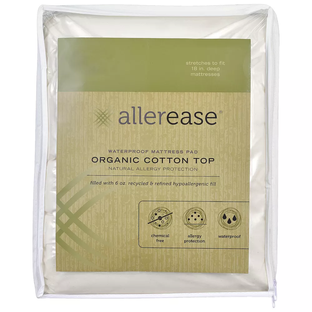 Add a layer of allergy protection to your bed with this Allerease waterproof mattress pad. In beige.